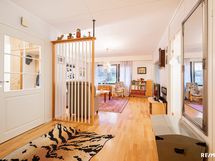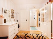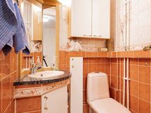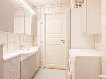- Pesutilojen kuvaus: Tilava kylpyhuone jonka yhteydessä siisti sauna. Kylpyhuoneessa tilaa pesutornille,