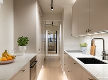 - Liesi: erillisuuni, liesitaso. Työtasot: kivi. Kylmäsäilytys: jääkaappi/pakastin. Varustus: astianpesukone, liesituuletin / suodatin. Kovapuu Tammi lattia. Kvartsi työtasot. Kaikki kodinkoneet ovat Siemens merkkisiä. Paitsi liesi taso on Savo. Keittiö on täysin uusi.