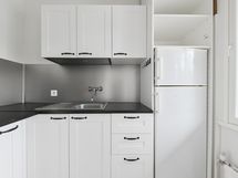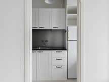 Keittiön varusteet: Jenkkikaappi ja uuni. Liesi: Keraaminen liesi. Työtason materiaali: Laminaatti.