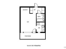 Pinta-alan peruste: Isännöitsijäntodistuksen mukainen ja yhtiöjärjestyksen mukainen. Ei tarkistusmitattu. Pinta-alat saattavat tämän ikäisissä kohteissa (yhtiö rekisteröity ennen 01.01.1992) poiketa olennaisestikin asuinrakennusten nykyisten mittaustapojen ja standardien (SFS 5139) mukaan laskettavasta asuintilojen pinta-alasta. Pinta-ala voi siis olla edellä mainittua pienempi tai suurempi. Asunto.