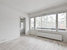 Tässä ylimmän kerroksen asunnossa on valoisa olohuone, jonka yhteydessä on alkovi tila, keittokomero ikkunalla, kylpyhuone, eteinen säilytyskaapistoilla sekä tilava lasitettu parveke. Parvekkeelta aukeavat ihastuttavat näkymät luontoon.