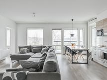 Astut sisään valoisaan ja harmoniseen kotiin, jossa kaikki on viimeistelty huolella. Avarasta olohuoneesta avautuu käynti etelään suuntautuvalle lasitetulle parvekkeelle, joka toimii lähes lisähuoneena aikaisesta keväästä myöhäiseen syksyyn. Ja mikä parasta: rauhoittavat näkymät Vesijärvelle tuovat arkeen ripauksen ylellisyyttä joka päivä.