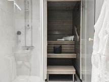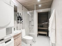 Kodin pohjaratkaisu on suunniteltu nykyaikaisen asumisen tarpeisiin. Keittiö on tyylikäs ja toimiva, makuuhuoneet tarjoavat mukavasti yksityisyyttä ja säilytystilaa, ja oma sauna kutsuu rentoutumaan. Jokainen yksityiskohta parkettilattiasta kylpyhuoneen laattoihin asti huokuu laatua ja ajattomuutta.