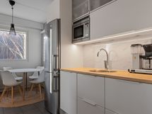 - Keittiön varusteet: Jääkaappipakastin, erillisuuni (Pyrolyysiuuni) ja keraaminen indutioliesitaso. Työtason materiaali: Laminaatti. Avokeittiö, keittiöremontti tehty 2021.