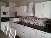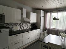 - Laminaattitasot, Paljon kaappitilaa, Astianpesukone, Keraaminen liesi, Liesi tai uuni erikseen, Liesituuletin, Jää-pakastinkaappi