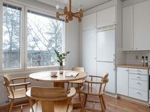 - Keittiön katto on maalattu valkoiseksi. Seinät on maalattu/yhdellä seinistä alaosassa on sisustuspaneelit.