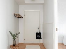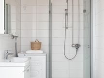 - Pesutilojen kuvaus: Kph on remontoitu taloyhtiön toimesta linjasaneerauksen yhteydessä 2022. Kph:ssa on mattavalkoiset seinälaatat ja lattiassa on vaaleanharmaat 10 x 10 lattialaatat. Katossa on puupaneelit. Valkoinen peilikaappi valolla, valkoinen allaskaappi. Valkoinen wc-istuin. Suihkukaappi (taittuvilla ovilla). Valkoinen korkea pyykkikaappi. Pesukoneliitäntä.