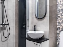 Kylpyhuone on uusittu kokonaan vuonna 2021, joten se vastaa nykypäivän vaatimuksia ja on huoleton käyttää pitkälle tulevaisuuteen.