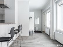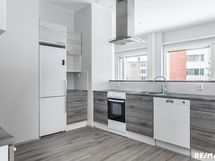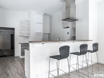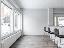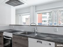 - Keittiön varusteet: Liesi, liesituuletin, uuni, astianpesukone ja jääkaappipakastin. Liesi: Keraaminen liesi. Työtason materiaali: Laminaatti.