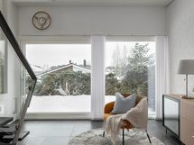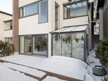 - huoneiston omalla vastuulla on omat lisävarustukset: ilmalämpöpumppujärjestelmä, alemman kerroksen liukulasiovi, pääsisäänkäynnin sähkösulatus ja eteläsivun koko lasikatos porealtaineen.