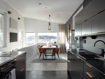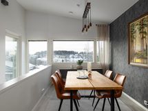 - Keittiö on remontoitu 2021-2022, jolloin kaikki keittiön kalusteet ja kodinkoneet on uusittu ja asennettu iso kivitasolla oleva saareke keittiöön. Ruokailutilan lattiassa oleva vinyylikorkki