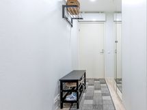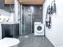 - Pesutilojen varusteet: WC-istuin, suihku, suihkuseinä, pesukoneliitäntä, lattialämmitys, peilikaappi, pesuallas, allaskaappi ja bidee-suihku.