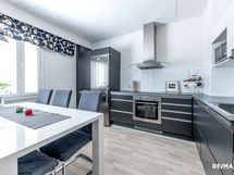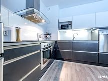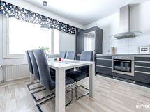 - Keittiön varusteet: Jääkaappipakastin, liesituuletin, astianpesukone, uuni ja liesi. Liesi: Induktioliesi. Työtason materiaali: Laminaatti. Keittiö uusittu 2011.