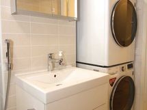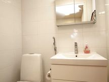 - Pesutilojen kuvaus: Lattia ja seinät laatoitettu, wc, suihku, pesukoneliitäntä, allas- ja peilikaappi. Lattialämmitys. Erillisen WC:n kuvaus: Erillinen wc. Lattia ja seinät laatoitettu. Allas- ja peilikaappi.