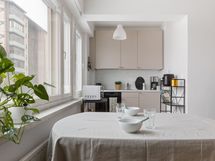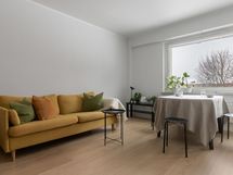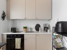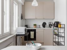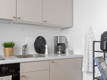 - Kaapistot uusittu runkoineen vuonna 2023. Keittiön ja olohuoneen välistä oviaukkoa on avarrettu (tiiliseinästä poistettu osa). Keraaminen keittotaso (v. 2023), erillisuuni (v. 2023), liesituuletin (v. 2023), integroitu jääkaappi pakastelokerolla (v. 2023). Lattiamateriaali on tammensävyinen laminaatti (Egger), seinät on maalattu & välitila on laatoitettu.