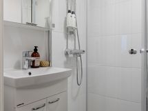 - Pesutilojen kuvaus: Kylpyhuone on uusittu taloyhtiön toimesta linjasaneerauksen yhteydessä v. 2025. Suihku, kääntyvät & taittuvat suihkuseinät, allas, peili- ja allaskaapit, pesukoneliitäntä, wc-istuin, sähkötoiminen mukavuuslattialämmitys. Lattia ja seinät on laatoitettu.