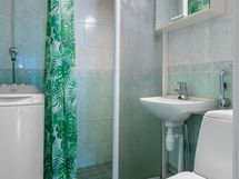 - Varustus: suihkuseinä, pesukoneliitäntä, wc-istuin, suihku.