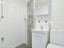 - Pesutilojen varusteet: WC-istuin, suihku, bidee-suihku, pesuallas, peilikaappi, allaskaappi, suihkuseinä ja pesukoneliitäntä.