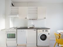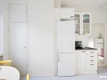 Jääkaappi/pakastin, astianpesukone, sähköliesi, liesituuletin.
