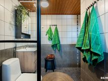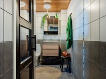 - Pesutilojen varusteet: WC-istuin, suihkuseinä, bidee-suihku, lattialämmitys, peilikaappi, allaskaappi ja pesuallas. Pesutilojen kuvaus: Kylpyhuone remontoitu 2010 ja uusittu kalusteita 2025. Erillisten WC:n lukumäärä: 1. Erillisen WC:n varusteet: WC-istuin, peilikaappi, allaskaappi, bidee-suihku, suihkukaappi ja pesuallas. Erillisen WC:n kuvaus: Alakerrassa erillinen wc, vesikiertoinen patteri.
