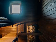 - Kiuas: Sähkökiuas. Saunassa tuuletusikkuna.