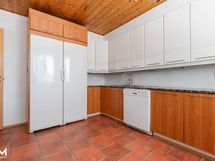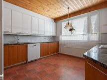 Jääkaappi/pakastin(epäkunnossa), kiertoilmauuni, astianpesukone(epäkunnossa), astianpesukoneliitäntä, kaapistot, sähköliesi, liesikupu/-tuuletin