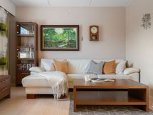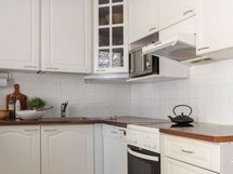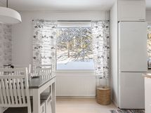 - Keittiön parketti on hiottu ja käsitelty vaaleaksi. Seinät on maalattu/tapetoitu.