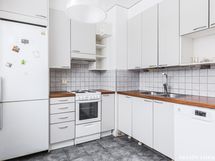 - Liesi: sähköliesi. Työtasot: laminaatti. Kylmäsäilytys: jääkaappi/pakastin. Varustus: liesituuletin, astianpesukone.