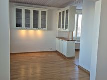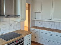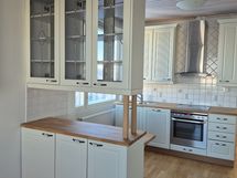 - Tilaa isolle ruokapöydälle, Paljon kaappitilaa, Paljon työskentelytilaa, Halogeenivalot, Lasikaapit, Suuri tiskipöytä, Puutasot, Astianpesukone, Pesukoneliitos, Sähköliesi, Keraaminen liesi, Liesituuletin, Jääkaappi