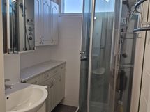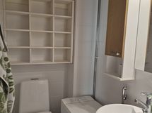 - Suihkukaappi, Pesukonevalmius, Peilikaappi, Allaskaappi, Rättipatteri, Laattaseinä, Halogeenivalot, Laattalattia, Avattava ikkuna, Erillinen WC, Lattialämmitys