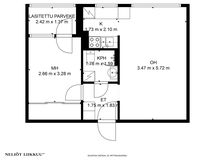 - Pinta-alan peruste: Isännöitsijäntodistuksen mukainen ja yhtiöjärjestyksen mukainen. Ei tarkistusmitattu. Pinta-alat saattavat tämän ikäisissä kohteissa (yhtiö rekisteröity ennen 01.01.1992) poiketa olennaisestikin asuinrakennusten nykyisten mittaustapojen ja standardien (SFS 5139) mukaan laskettavasta asuintilojen pinta-alasta. Pinta-ala voi siis olla edellä mainittua pienempi tai suurempi.