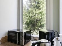 - Varustus: jääkaappi/pakastin, liesikupu. Liesi: sähköliesi. Työtasot: laminaatti. Lattia: laminaatti. Seinät: maalattu, osalaatoitus.