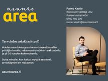 Taloyhtiö on hyväkuntoinen, se sijaitsee omalla tontilla ja siinä on edullinen hoitovastike. Talossa on huoneistokohtainen ilmanvaihto lämmöntalteenotolla. Sijainti on hyvä. Liikenneyhteydet ovat erinomaiset, keskustaan on matkaa vain 1,8 kilometriä. Asunnon mukana on mahdollisuus ostaa autokatospaikka. Tästä hyvä koti itselle tai sijoitukseen. Lisätietoja ja esittelyt Raimo Kaulio LKV, RI p. 0400 489109.