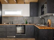 - Liesi: induktio, erillisuuni. Kylmäsäilytys: jääkaappi/pakastin. Varustus: liesituuletin, astianpesukone, kiinteät valaisimet.