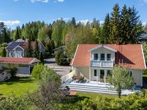 2001 valmistunut hyvin pidetty talo lapsiperheelle jonka alakerrassa asuintiloina keittiö, olohuone, makuuhuone sauna, kylpyhuone, kodinhoitohuone ja wc. Yläkerrassa aula, kaksi makuuhuonetta wc ja vaatehuone. Tilava aurinkoinen terassi jossa pääset nauttimaan kesäpäivistä. Lämmitysmuotona sähkölämmitys, varaava takka ja ilmalämpöpumppu.