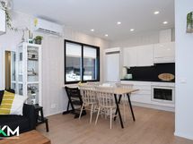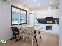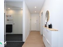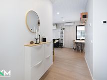 Tiloina 2 makuuhuonetta, olohuone/ avokeittiö, kylpyhuone, sauna, vaatehuone ja erillinen wc. Olohuoneen yhteydessä iso 25 m2 tilava terassi, terassille pääsee myös toisesta makuuhuoneesta. Ulko-oven yhteydessä erillinen ulkovarasto. Säilytystiloina vaatehuone, kaapistot, käyttöullakko sekä ulkovarasto. Kauniin tyylikäs avokeittiö, yhtenäiset vinyylilattiat, vaalea ajaton sauna lasiseinillä Harvian pilarikiukaalla. Lämmitysmuotona sähkö/ lattialämmityksellä sekä ilmalämpöpumppu. Olohuoneessa takkavaraus. Kaupungin vuokratontti, jossa viisi itsenäistä hallinnanjakosopimuksella erotettua omakotitaloa. Oman talon pihamaalla nurmialuetta ja istutuksia, aurinkoinen piha ja terassi.