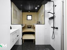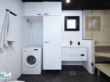 Pesuhuone, suihku, sähkösauna, erill.wc, peilikaappi, pesukoneliitäntä, lattialämmitys, kiinteät valaisimet