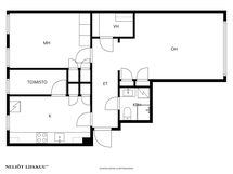 Pinta-alan peruste: Yhtiöjärjestyksen mukainen ja isännöitsijäntodistuksen mukainen. Ei tarkistusmitattu. Pinta-alat saattavat tämän ikäisissä kohteissa (yhtiö rekisteröity ennen 01.01.1992) poiketa olennaisestikin asuinrakennusten nykyisten mittaustapojen ja standardien (SFS 5139) mukaan laskettavasta asuintilojen pinta-alasta. Pinta-ala voi siis olla edellä mainittua pienempi tai suurempi.