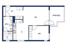 - Pinta-alan peruste: Isännöitsijäntodistuksen mukainen ja yhtiöjärjestyksen mukainen. Ei tarkistusmitattu. Pinta-ala voi siis olla edellä mainittua pienempi tai suurempi.