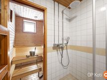 - Sauna, sähkökiuas, kylpyhuone, suihku, suihkuseinä, peilikaappi, allaskaappi, pesukoneliitäntä, kiinteät valaisimet. Saunapanelit uusittu 2021