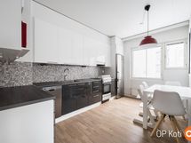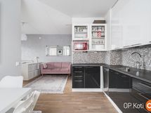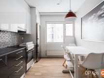 - Jääkaappipakastin, keraaminen liesi, liesituuletin, astianpesukone, kaapistot, kiinteät valaisimet.