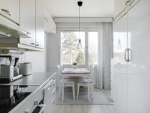 - Keittiön varusteet: Jääkaappi (2003), erillinen pakastin (2003), liesi (2022), liesituuletin ja astianpesukone (2022). Liesi: Induktioliesi. Kaapistot uusittu v.2003 (Puustelli).