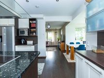 Jääkaappi/pakastin, induktioliesi, liesituuletin hormiin, kivisaareke, Side by side -jääpalakone.