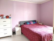 Kolme makuuhuonetta, joista yksi on kaksiosainen eli tästä makuuhuoneesta on käynti pienempään huoneeseen, jota voi pitää pienemmän lapsen makuuhuoneena tai tehdä sinne vaikka pukeutumishuoneen.