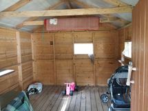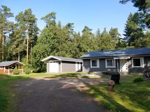 Suojaisa pihapiiri tarjoaa mainiot puitteet niin lasten leikkeihin kuin aikuisempien rentoutumiseen, eikä naapurien katseet yllä tänne. Pihalta löytyy myös käytännöllinen ulkorakennus, jossa on autotalli sekä mukavasti varastotilaa, ja lapsille oma leikkimökki.