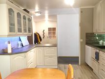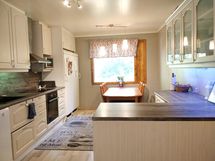 Keittiön varusteet: Jääkaappi, erillinen pakastin, erillisuuni, liesi ja astianpesukone. Liesi: Induktioliesi. Työtason materiaali: Laminaatti. Keittiö uusittu v. 2015.