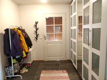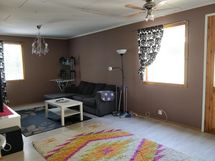 Olohuoneessa varaava takka. Olohuoneesta on myös käynti ulos.