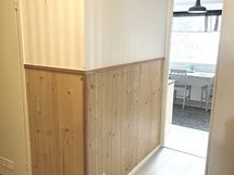 - Lattialle laitettu vinyyli sekä kaappien ovet maalattu 2023.