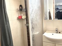 - Suihku, Suihkuseinä, Pesukonevalmius, Peilikaappi, Allaskaappi, Laattaseinä, Laattalattia, Lattialämmitys