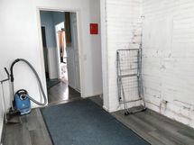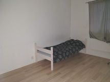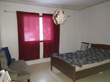 Kahdessa makuuhuoneessa on muovimatto lattialla. Yhdessä makuuhuoneessa on laminaattilattia. Entisessä takkahuoneessa on muovimatto.